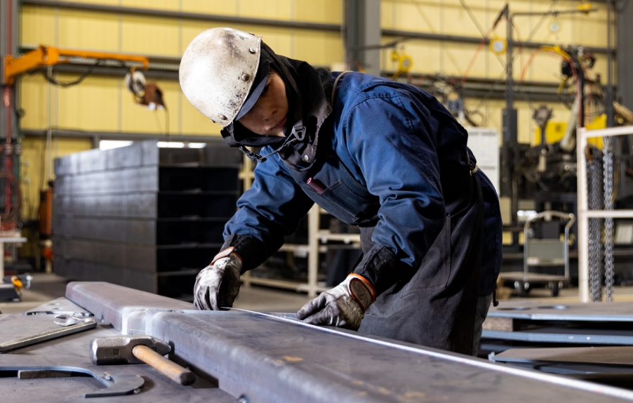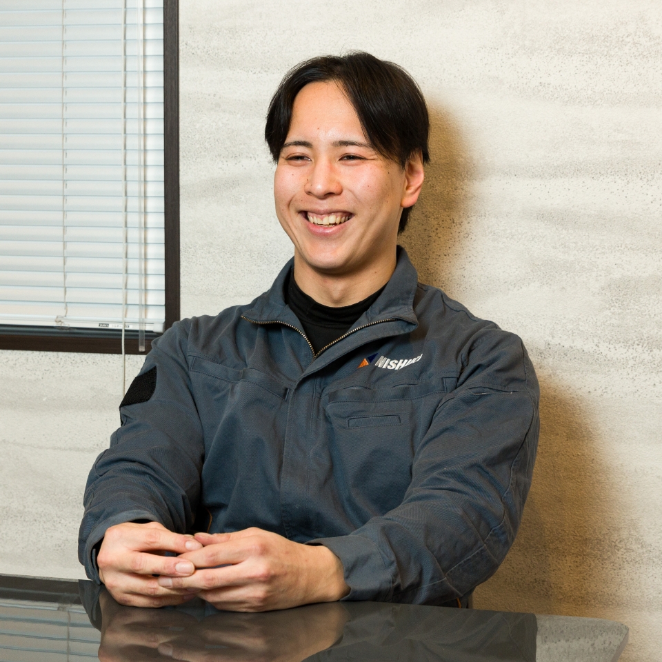 高校のインターンシップで錦工業からものづくりの楽しさややりがいを感じたことが入社の決め手でした。3日間という短さでしたが、社員さんと同じ溶接の機械を使ったものづくりが楽しい!と。だからまずは工場見学に来てほしいですね。そのときは、溶接の楽しさを私寺本が十分にお伝えします。